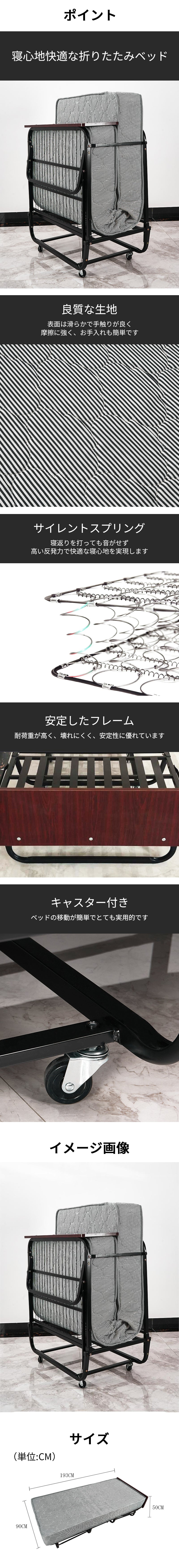 - 折りたたみベッド シングルベッド 折り畳みベッド パイプベッド ベッド スプリングマットレス キャスター付き 省スペース ストライプ カスタマイズ可能 ZDC-K015