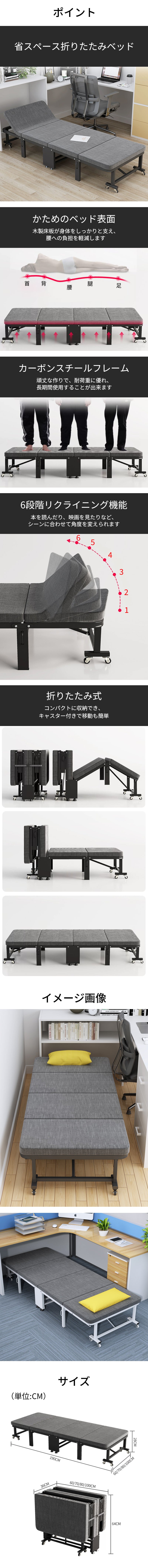 - 折りたたみベッド シングルベッド 折り畳みベッド パイプベッド ベッド リクライニング 炭素鋼フレーム コンパクト キャスター付き グレー ZDC-K008