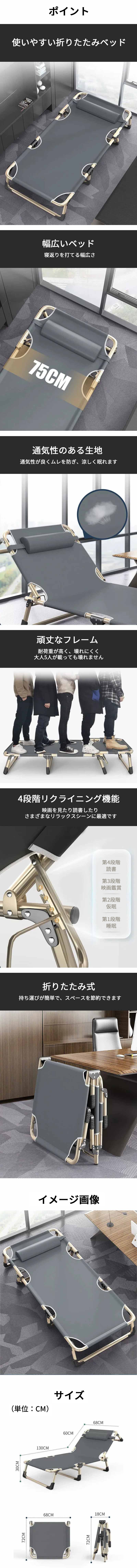 - 折りたたみベッド シングルベッド 折り畳みベッド パイプベッド ベッド リクライニング 省スペース 金属フレーム マットレス付き コンパクト グレー ZDC-K006
