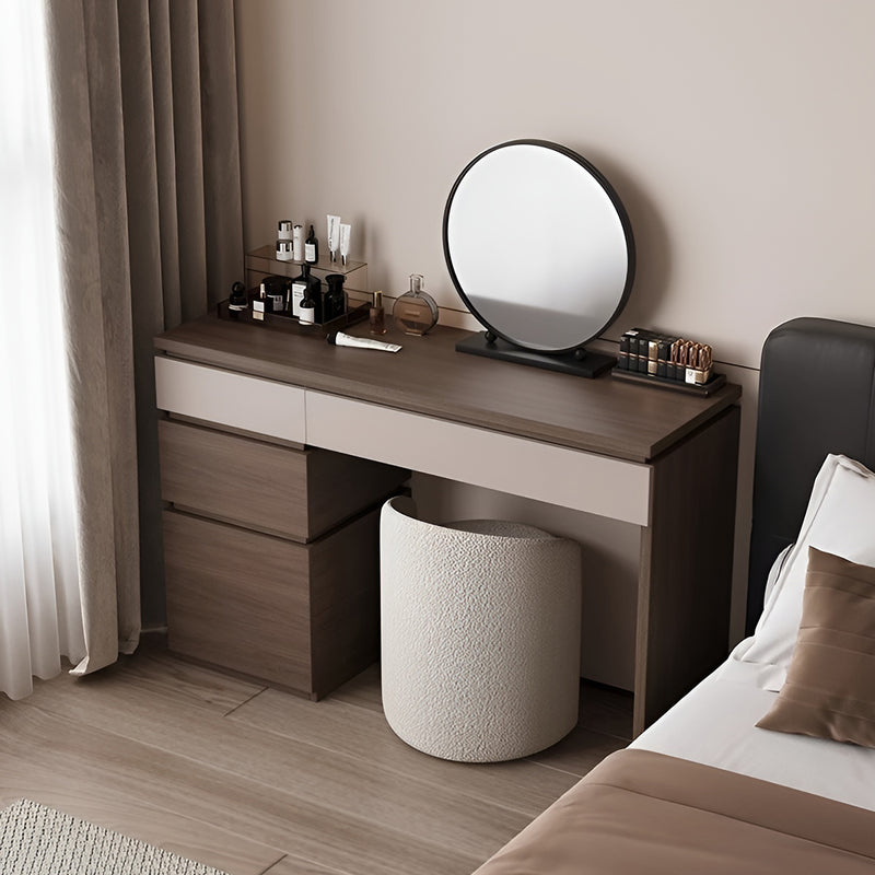 引き出し 大容量 分類収納 エコ板材 頑丈 広い天板 ゆとり 隠し取っ手 木目調 ドレッサー デスク 鏡台 落ち着き 機能的 穏やか ウォールナット HZT-K044