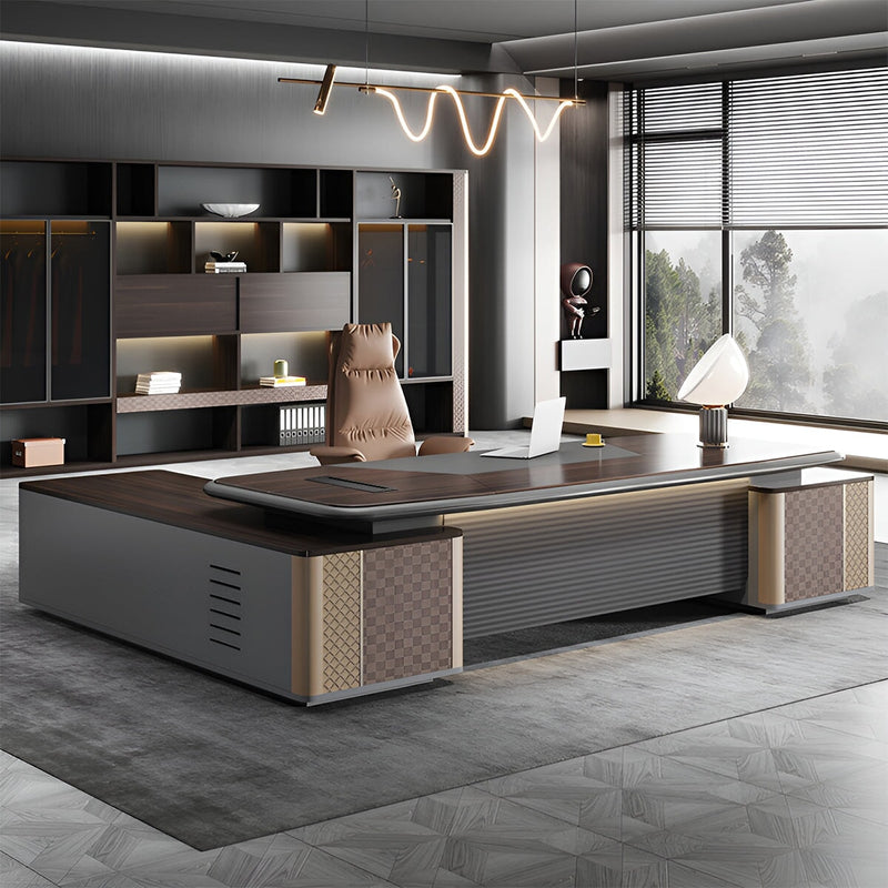 幅広 スチールフレーム 台形 横フレーム 厚い天板 エッジ加工 デスク オフィスデスク パソコンデスク 木目調 上質 ミニマル BGZ-C076-kc