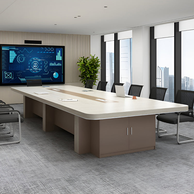 幅広 ゆとり R仕上げ 分厚い天板 幕板 安定性 扉付き収納 大容量 テーブル 会議テーブル 落ち着き 機能性 ナチュラル カスタマイズ可能 HYZ-K025