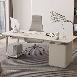 - 厚い天板 幅広 配線ボックス 斜めカット R仕上げ 役員デスク エグゼクティブ 収納 キャビネット 引き出し 穏やか 機能的 上質 ホワイト カスタマイズ可能 LBZ-K-062