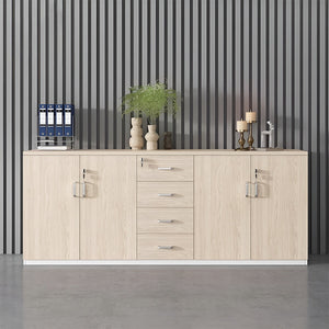- メラミン化粧板 耐久性 大容量 扉収納 引き出し 錠付き 木目調 優しい風合い 収納キャビネット キャビネット オフィス用 簡素 すっきり 抜け感 ホワイト カスタマイズ可能 SNG-K012