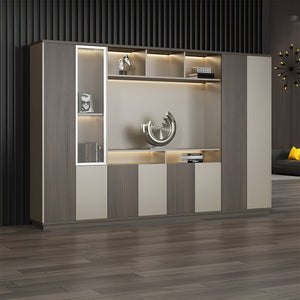 - 収納 棚 キャビネット 収納キャビネット 収納棚 多段式 大容量 扉付き エコ板材 穏やか おしゃれ ブラウン カスタマイズ可能 LBG-K010