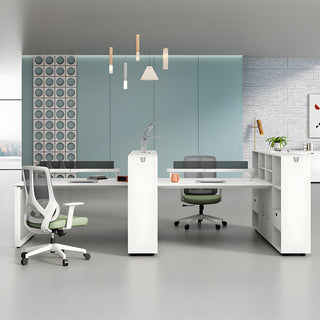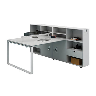 - パソコンデスク 収納付きデスク 大容量の収納 パーティション付き 事務机 ワークデスク コンパクトデスク オフィスデスク PCの通気孔 高級感 ホワイト MG-BGZ-LLS15
