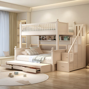 - 天然木 耐久性 ベッドガード 転落防止 引き出し スライドベッド シェルフ はしご 階段 ベッド 2段ベッド シック 機能的 使いやすい ホワイト カスタマイズ可能 SCC-K052